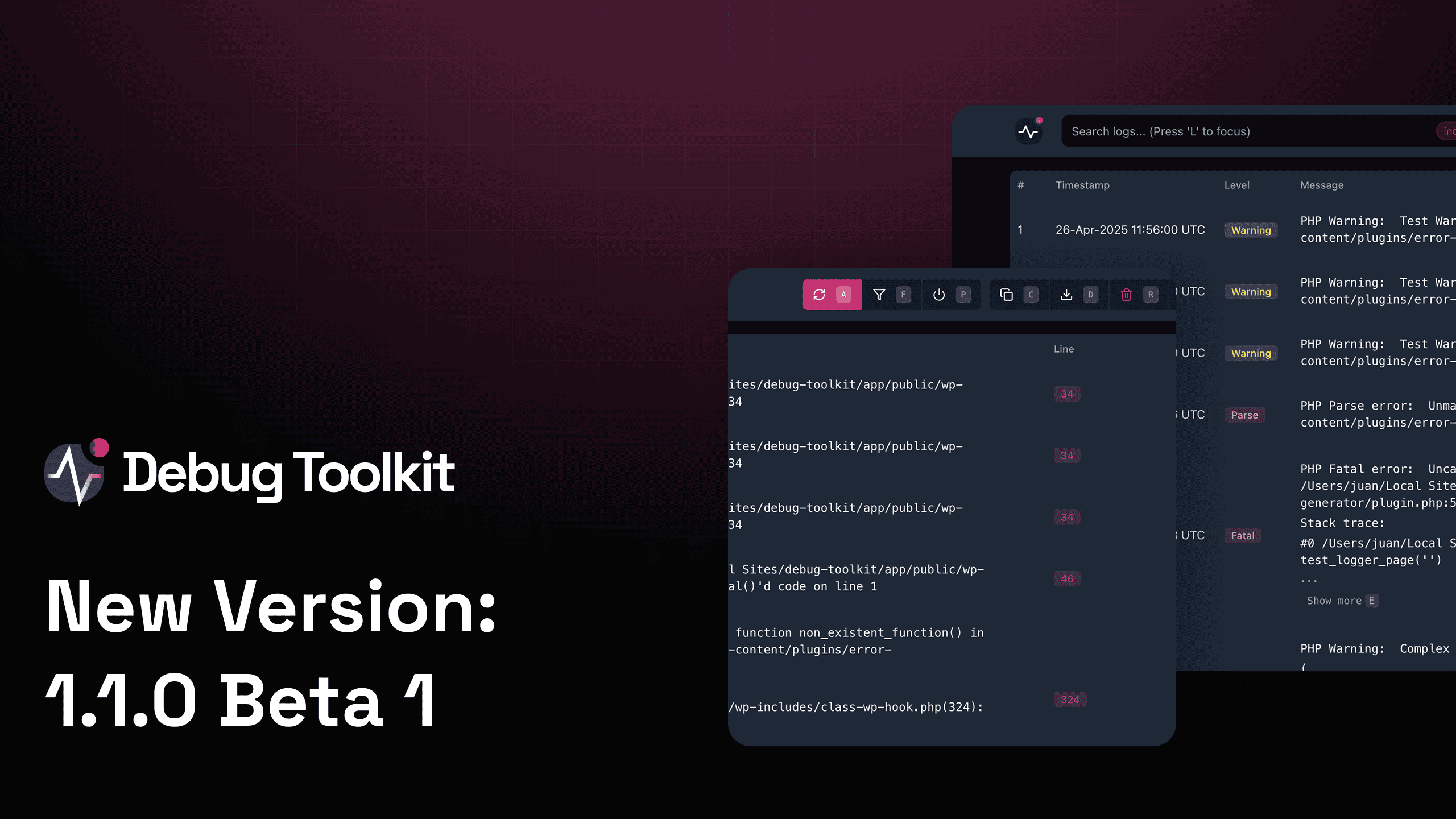 WP Debug Toolkit’s version 1.1.0 Beta 1 is our biggest update yet, bringing a full Query Logger, a new email notification system, and a major round of security hardening for the standalone viewer.